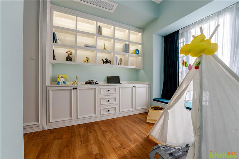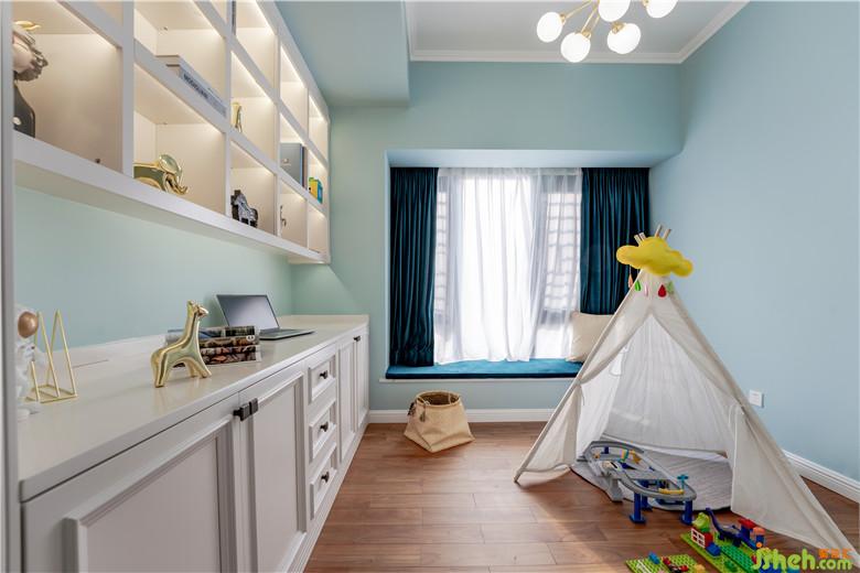 法式不一定是滿墻繁復(fù)的線條,簡單的色彩碰撞與搭配,恰到好處的書柜書桌設(shè)計,會令你頓然覺得“剛剛好”。什么顏色最適合學(xué)習(xí)與玩耍?我給的答案是“剛剛好淺藍(lán)色”。