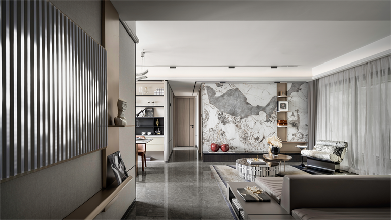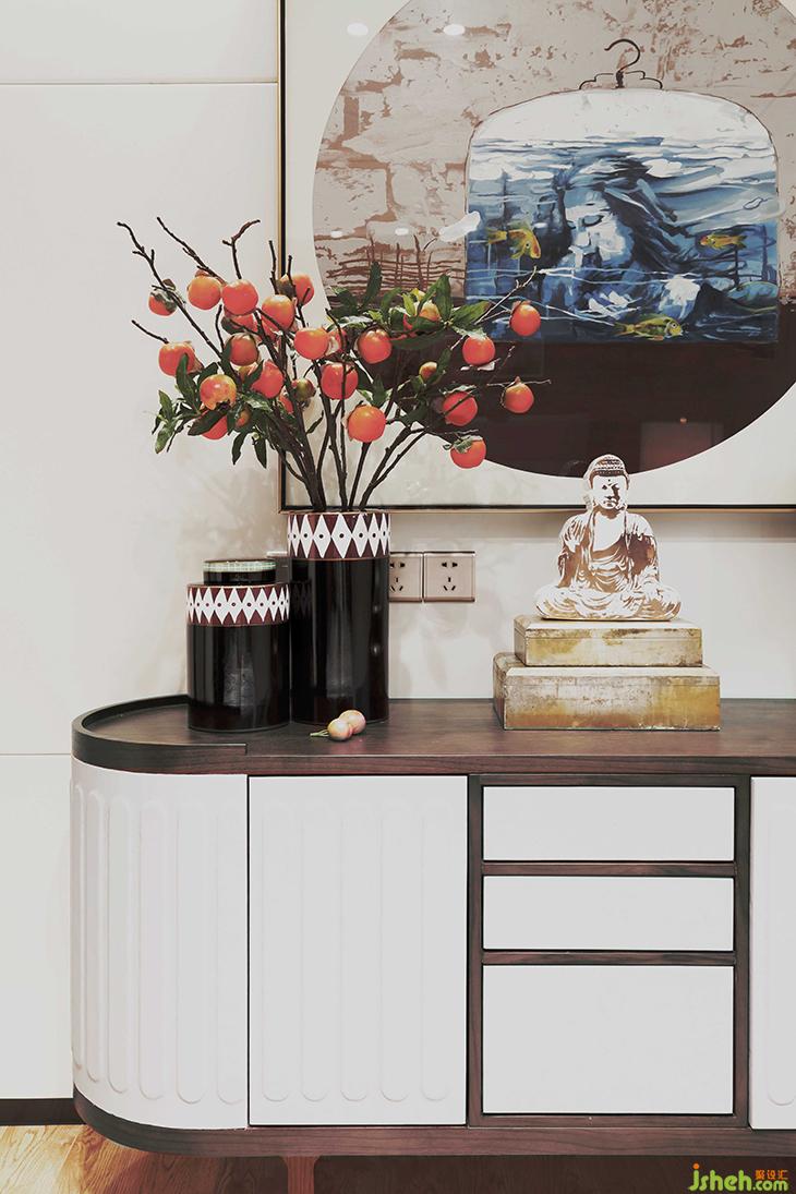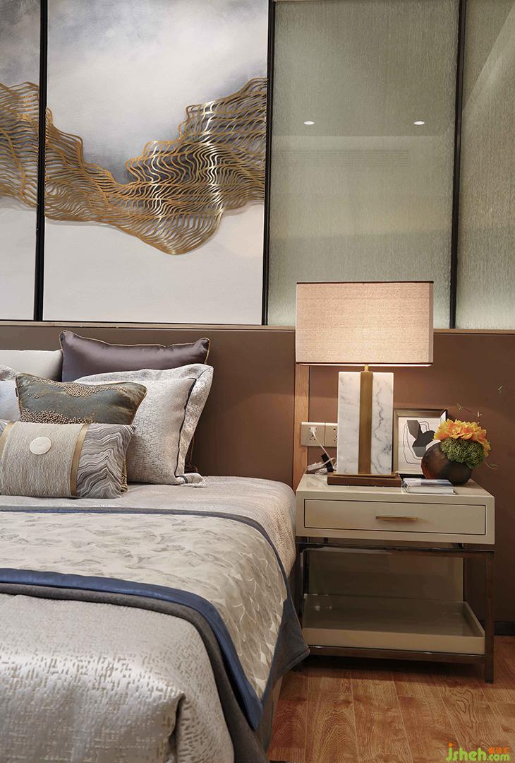 客廳《守望天使》的當(dāng)代畫作,超現(xiàn)實(shí)主義的夢(mèng)幻與先鋒畫派的高冷交織出迷離的美,與何多苓畫布上仙氣飄渺的花兒何其接近:茫然而詩(shī)意,傳遞出城市人普遍共有的精神特征,我們茫然地躬行在人生旅途,所幸頭頂有詩(shī)意的星空可以仰望。