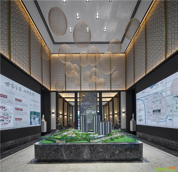 平衡對稱的布局銜接大廳、沙盤區(qū)與接待區(qū),在整個空間中,設(shè)計(jì)師將傳統(tǒng)與現(xiàn)代的界限模糊化,卻各自保留其精致奢美的質(zhì)感,融而不斷,形成空間的通透性,呈現(xiàn)虛實(shí)相間的效果。