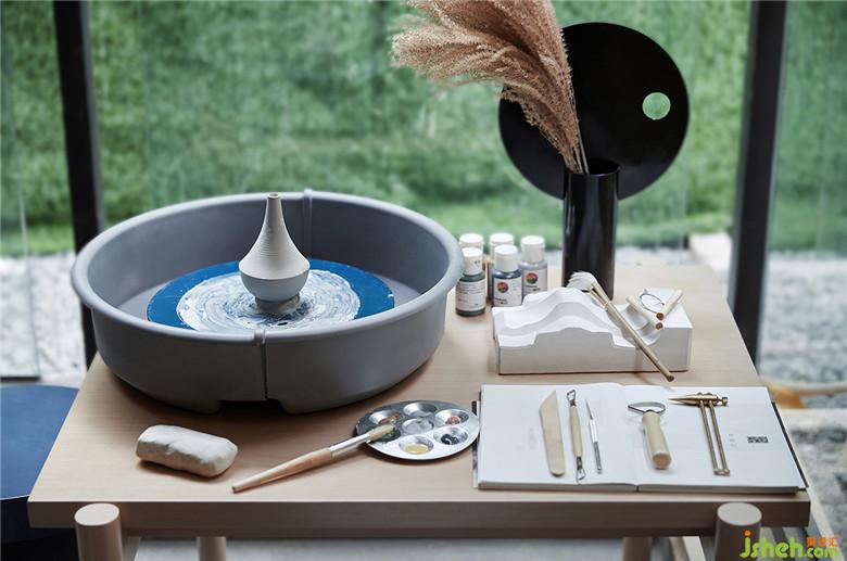 陽臺一隅,設置了簡單的陶藝工作臺,生活與愛好在此間,得以隨意而自由地切換。通過細節(jié)的打磨,展示出居者對理想生活的美好期待。