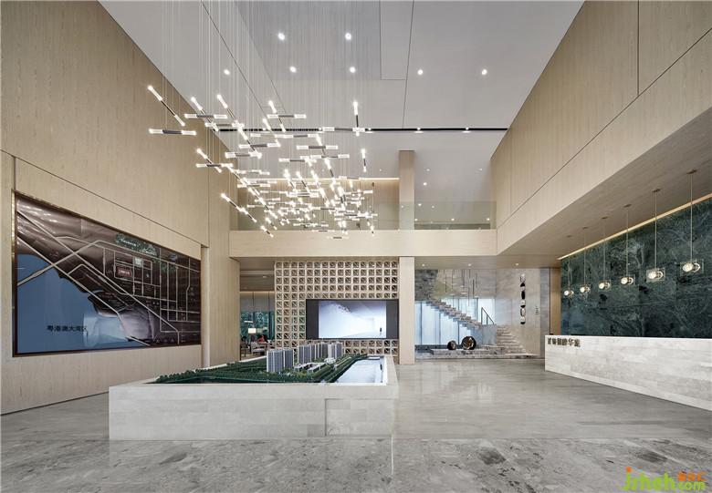 眼前的沙盤區(qū)極簡通透,沒有多余的裝飾,以燈飾的流線感將整個空間連貫起來。沙盤上方的吊燈,遠看錯落,近看規(guī)整,寓意從不同的角度看,對事物的感知也不同。