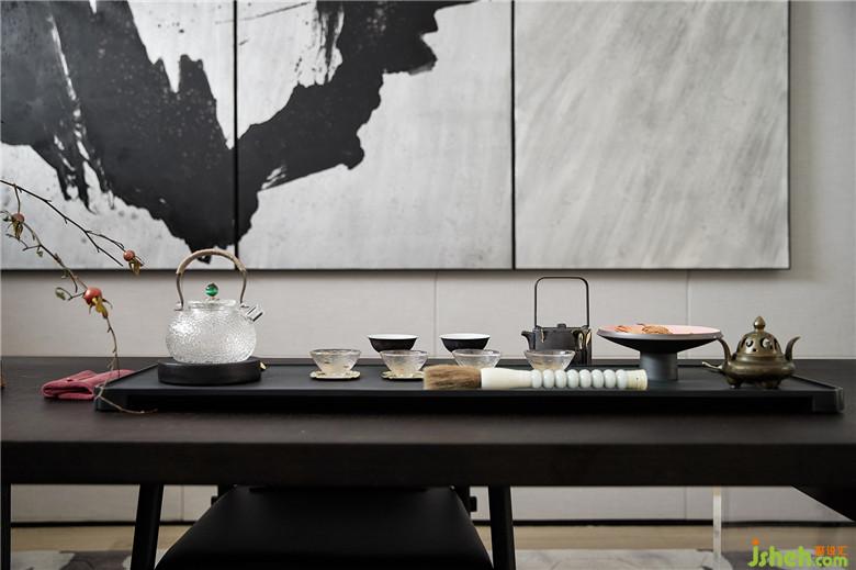 二樓的茶室以水墨渲染空間,中式元素的擺件和別致的茶具透出淺淺禪意,其義自見。