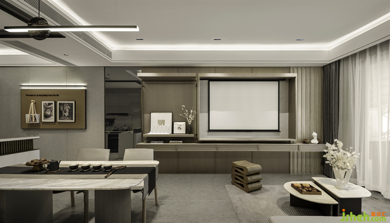 舒適、悅己、多元成為居所最為重要的內(nèi)核存在,催生自然、自由的空間形態(tài)。樣板房設(shè)計(jì)以趨近自然主義的MUJI風(fēng),以原木色和米色的整體清瘦設(shè)色,創(chuàng)造安靜潔雅的空間氣質(zhì),在平靜、簡素的弱對比色中,溫馨靜謐的居家情韻自然生成。