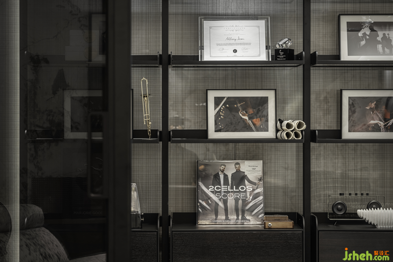 客廳是整個居所價值感營構(gòu)的關(guān)鍵,GNU基于對目標(biāo)客群的生活場景分析,樣板房設(shè)計了兩稿方案:方案一為純4居室,滿足三代同堂、兩孩的大家族功能需求,同時通過玻璃、金屬等透明輕便材質(zhì),創(chuàng)造寬闊的視野景觀;方案二為3+1戶型,將客廳與音樂房僅用沙發(fā)予以半隔斷,消弭空間邊界,延長橫廳的視線觀感,放大了客廳的尺度。