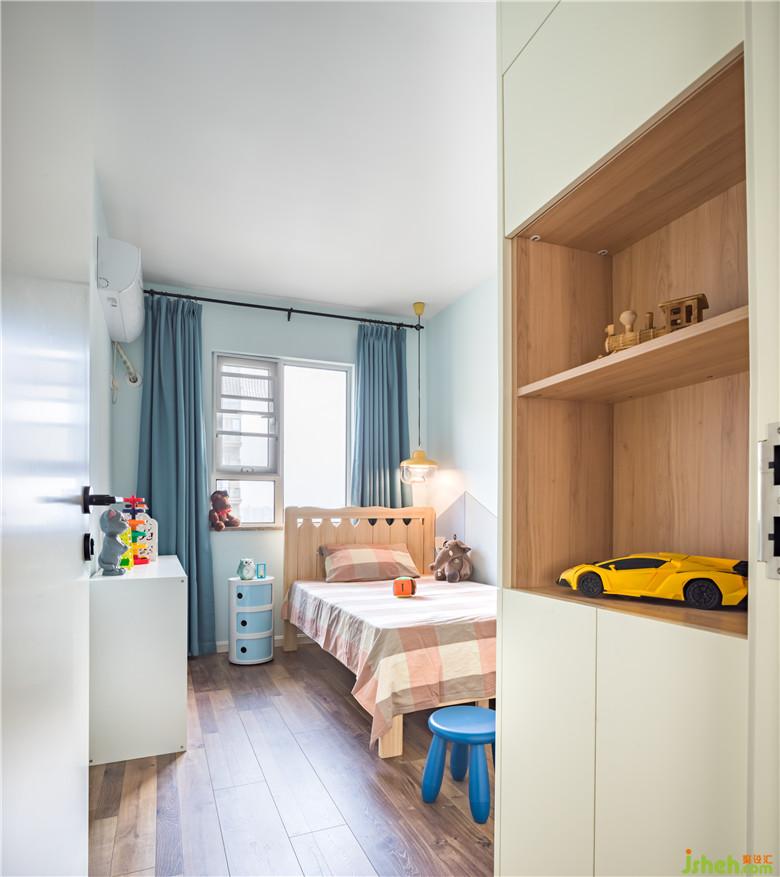 入戶正對(duì)的房間客戶計(jì)劃作為小孩房的,室內(nèi)設(shè)計(jì)師去了現(xiàn)場(chǎng)觀察后決定此處作為書(shū)房來(lái)使用,雖然這邊有陽(yáng)光,主要考慮是屋主的生活習(xí)慣,白天在書(shū)房的時(shí)間會(huì)很多的,再次處曬曬太陽(yáng)看看書(shū),陪伴著小孩玩下會(huì)變得愜意起來(lái)。而北邊房間作為臥室,這樣也能把動(dòng)區(qū)和靜區(qū)分開(kāi)。