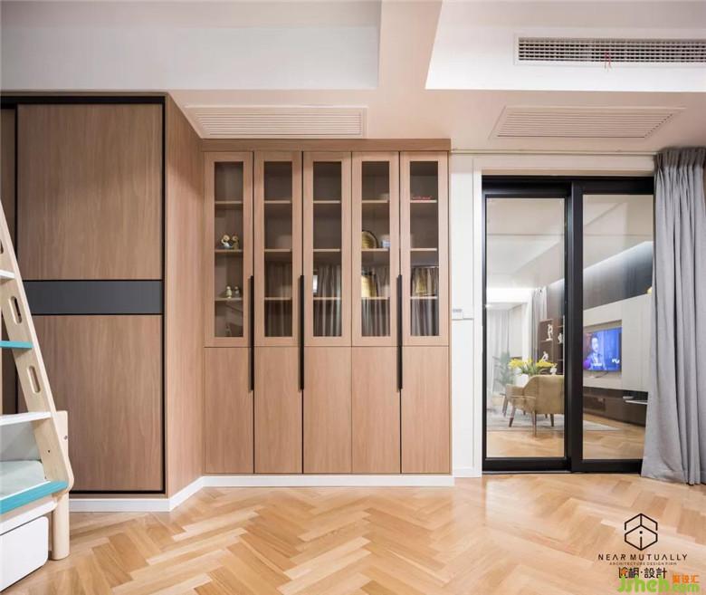 我們使用玻璃移門(mén)作為隔墻,一方面使得使空間變得通透,增加了互動(dòng)性,另一方面可以滿足父母需要關(guān)注及照看年幼孩童的需求。