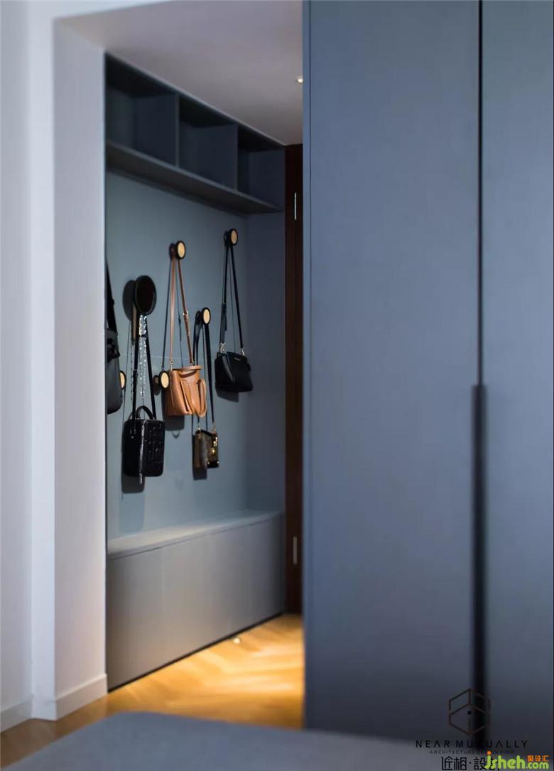 主臥墻面處裝修公司設(shè)計了跳色的藝術(shù)掛鉤