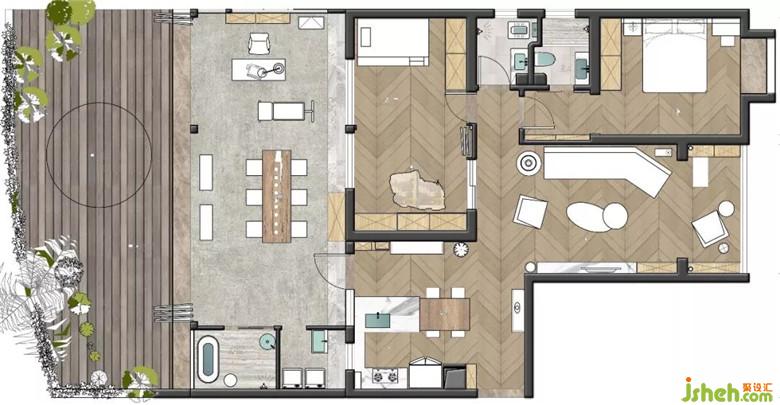 露臺搭建了一個功能陽光房,地面保留了原有的戶外木.