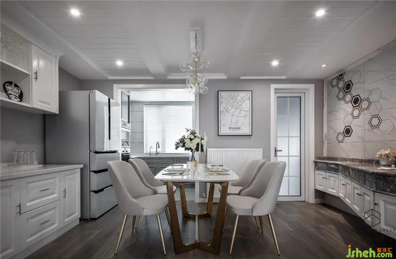 打破傳統(tǒng)廚房布局,裝修公司將廚房和客廳有機(jī)融合,打造一個(gè)家人有更多時(shí)間體驗(yàn)生活和更多交流的綜合體空間。