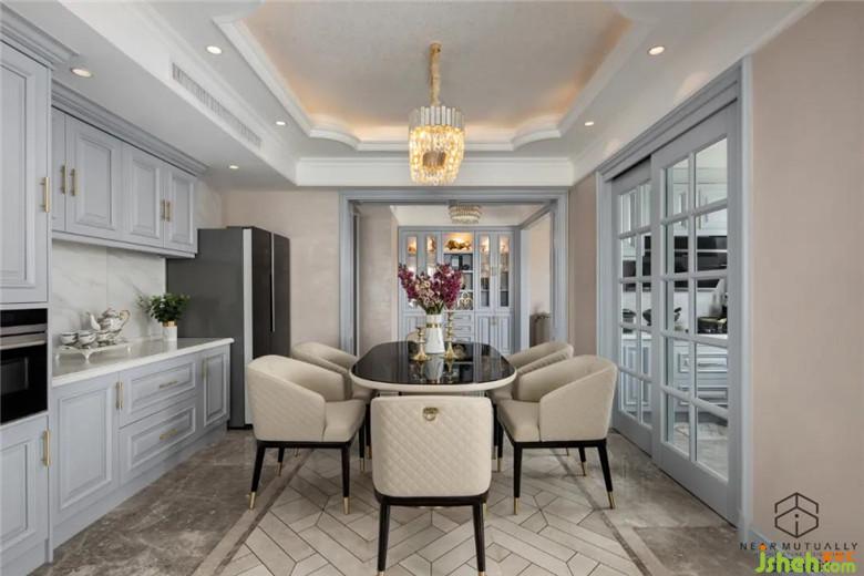 餐廳容納著茶余飯后的歡聲笑語,也見證著所有珍貴的團(tuán)圓時刻。白色的護(hù)墻板搭配黑色的桌面,整體通透,延伸視覺且統(tǒng)一。餐廳裝修公司依然秉承著整體優(yōu)雅休閑,細(xì)節(jié)處精致用心的設(shè)計理念。
