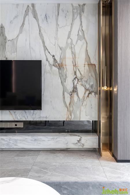 大理石與木材的交互,天然的材質(zhì)。抽離出被時光剝蝕后的美。自然、人文、藝術(shù)融為一體,展現(xiàn)精致的生活態(tài)度。主臥的線條沒有那么硬朗,更為柔和、細膩。