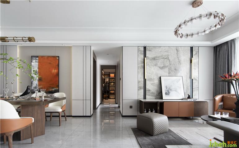 樣板房設(shè)計(jì)全屋空間以棉麻布藝、皮革、金屬增添空間的層次感,局部配以融于時(shí)尚的人文藝術(shù)品,不同材質(zhì)與質(zhì)感的融合,營(yíng)造出室內(nèi)的高級(jí)精品與藝術(shù)感,空間使用橙色系加上高級(jí)灰咖,使空間呈現(xiàn)出現(xiàn)代時(shí)尚高雅低奢的格調(diào)。