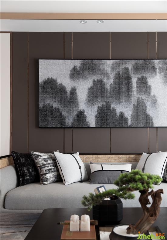 鵝黃色搭配深棕色,冷暖色調(diào)的自然融洽,給人一種由內(nèi)到外的高貴氣質(zhì),也體現(xiàn)一種精致的生活態(tài)度?;揖G色作為點(diǎn)睛之筆,如驚鴻一瞥,打破沉靜之美,讓空間更加靈動。