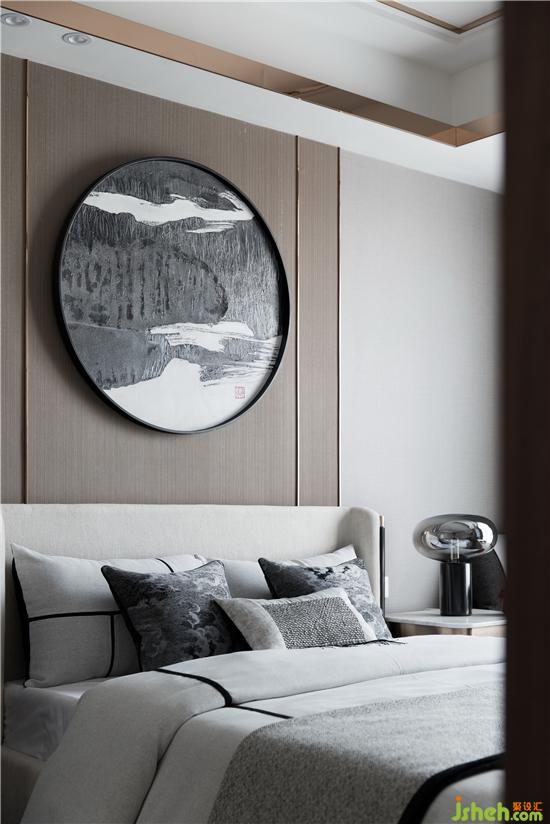 樣板房設(shè)計(jì)師對(duì)詩歌意境進(jìn)行提煉、抽象、變形簡(jiǎn)化,將世家子弟的儒雅底蘊(yùn)與富有張力的現(xiàn)代浪漫結(jié)合,高貴的氣質(zhì)在高級(jí)灰與暖人的棕色結(jié)合的剎那占領(lǐng)整個(gè)空間,出于對(duì)傳統(tǒng)文化內(nèi)蘊(yùn)的理解和傳承文脈的高遠(yuǎn)信念,在吊燈溫潤的質(zhì)感與盈透的色澤中,閃耀著粼粼波光。