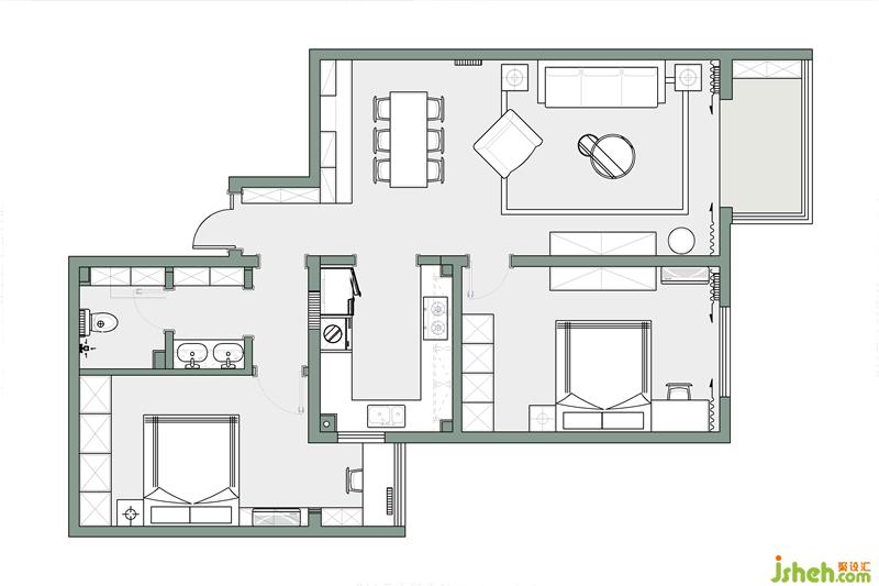 3.調(diào)整了衛(wèi)生間門的位置,增加內(nèi)部空間的儲(chǔ)物需求。