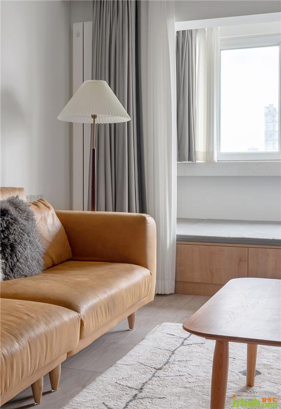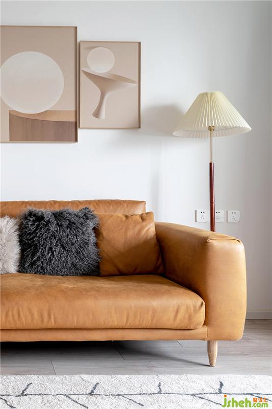 棉麻地毯,方形茶幾,淺棕的沙發(fā)沙發(fā),再配上一盞金屬桿的落地?zé)?,和諧的角落,依靠在這里,可以感受暖暖的陽(yáng)光。