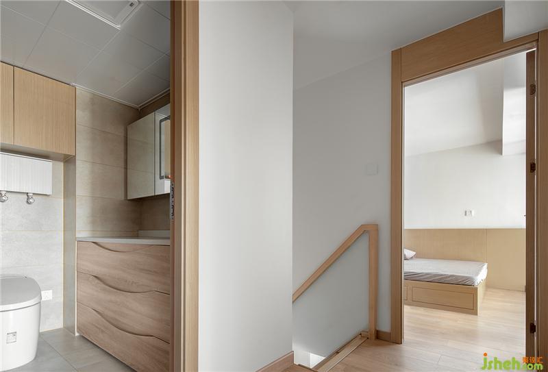 原戶型中沒有明確樓梯位置,我們通過改動二層臥室與衛(wèi)生間之間的墻體來實現(xiàn)樓梯功能,雖縮減了衛(wèi)生間的一些面積,但是并不影響其日常使用,何樂而不為。