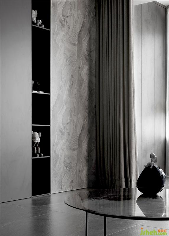 整個空間無色處理,像是她爽朗的性格,從不拖泥帶水。十多種灰色材質(zhì)的碰撞拼接,和黑白重色的配合,足以帶來品味不凡的藝術(shù)效果。無主燈設(shè)計,可切換環(huán)境區(qū)域的流動光線,每一處都留下令人駐足的光影。摒棄傳統(tǒng)木紋材質(zhì),硬朗的質(zhì)感讓整個空間多了一份超時空的未來感。如同遨游在月球之中。