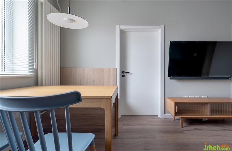 餐廳卡座的使用節(jié)省了就餐區(qū)域的空間,同時下方可以儲物,增加了收納。卡座靠背的背板厚度與門套一致,使整體感覺并不突兀。