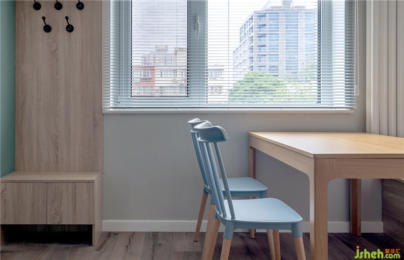 餐廳窗戶選用純白的百葉簾,百葉簾的的自由度很高,可以調(diào)節(jié)葉片角度控制光線的射入,能夠給室內(nèi)帶來極具線條美感的光影效果,也易于拆卸清洗。