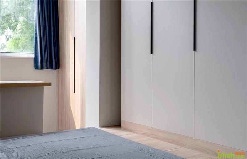 主臥定制了榻榻米地臺床,與衣柜相銜接,擁有海量的收納空間,完全解決了整屋的儲物問題。柜體選用隱藏拉手設(shè)計(jì),由上拉和抽屜式開啟,使其更加整體。