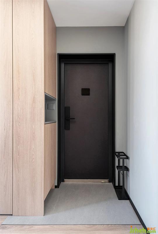 玄關(guān)柜與餐廳的儲(chǔ)物柜形成一個(gè)整體,底部預(yù)留一部分空間可以擺放拖鞋。中間預(yù)留了開放格方便進(jìn)門存放包包、鑰匙等物品。右側(cè)增加一個(gè)傘架,防止雨傘弄濕地面。
