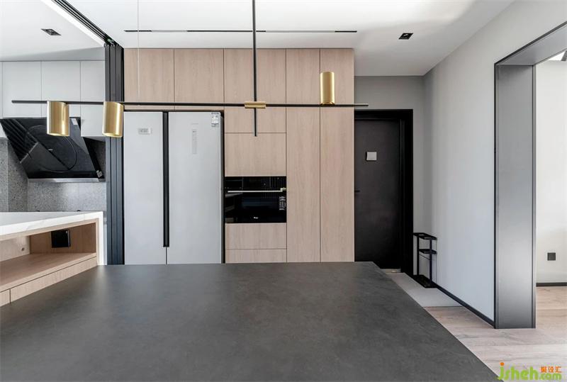 2.玄關(guān)收納與餐廳收納結(jié)合在一起,并將烤箱、冰箱等電器嵌入其中,使整體更加整潔。