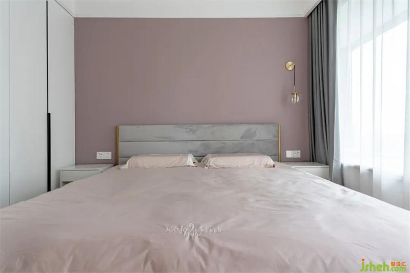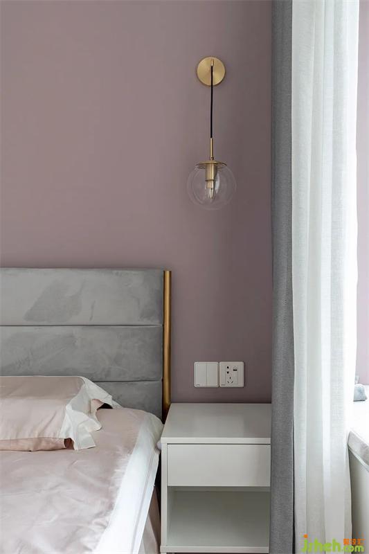 陽光穿過飄窗,撒落在床頭,粉色帶來溫柔,金色優(yōu)雅精致。