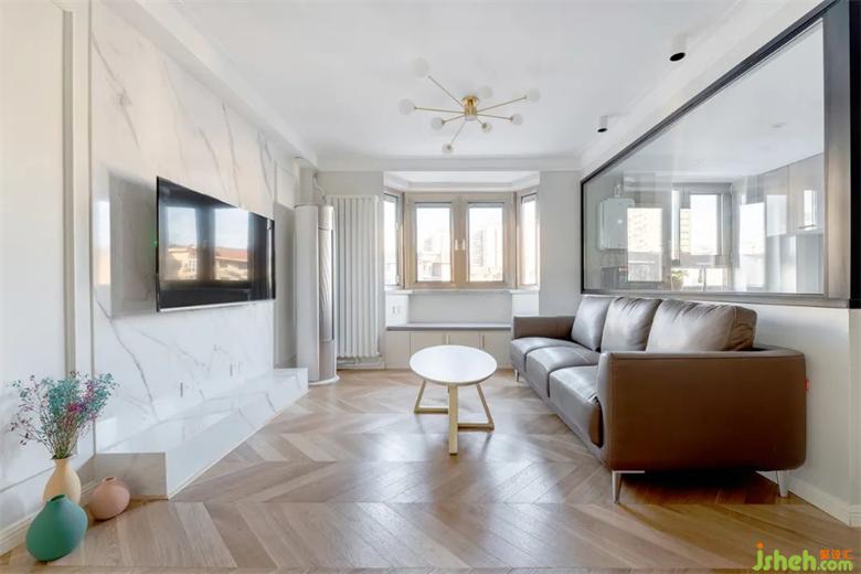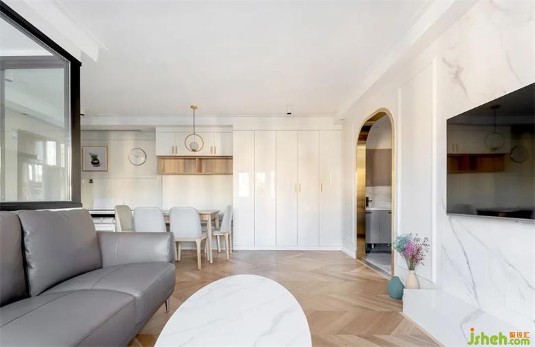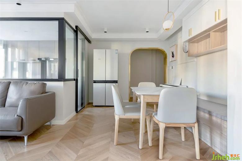 白色柜體遇上木色家居會溫馨很多,搭配原木魚骨拼的地板,簡單中含有一些變化。