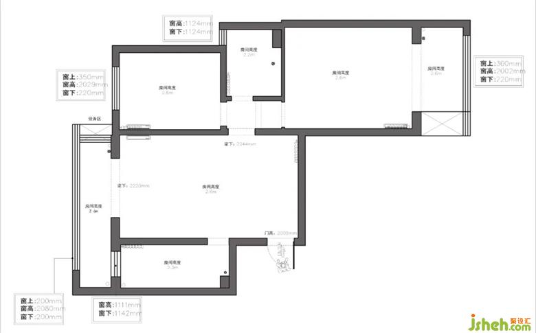 1.拆除衛(wèi)生間的墻體,向主臥內(nèi)擴(kuò)30公分,擴(kuò)大衛(wèi)生間使用面積