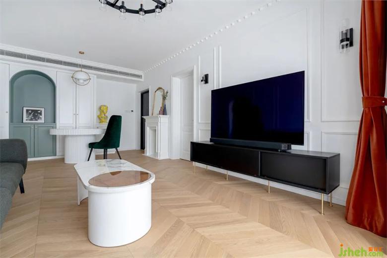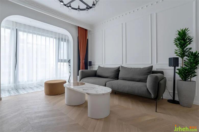 客廳陽(yáng)臺(tái)的埡口進(jìn)行了圓弧的處理,裝修淡化了直角帶來(lái)的生硬感,電視柜的高角設(shè)計(jì)更加方便衛(wèi)生的清理。