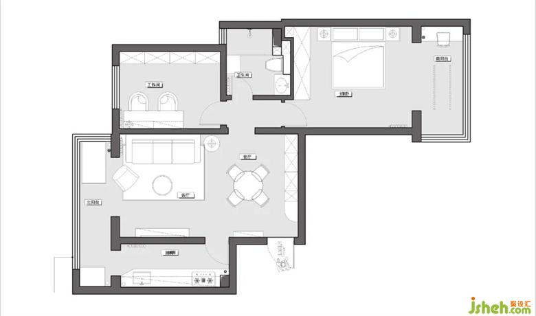 2.拆除主臥和陽(yáng)臺(tái)的隔斷門(mén),把陽(yáng)臺(tái)的面積劃分到主臥,優(yōu)化主臥的尺度感。