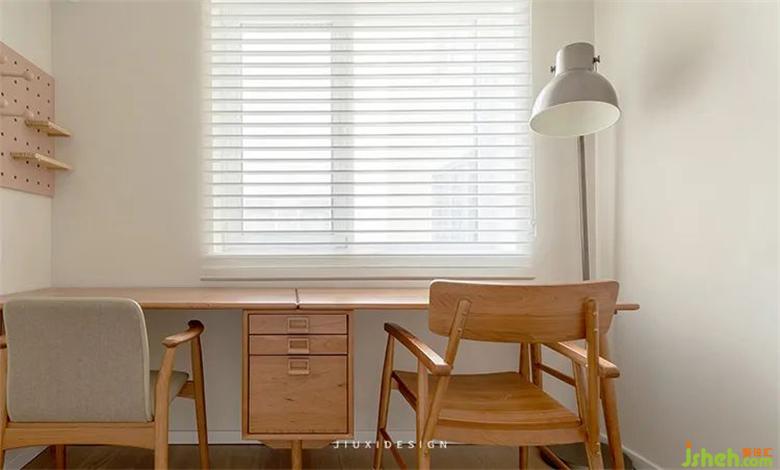 一間獨立的書房,裝修設(shè)計可以給屋主創(chuàng)造出安靜的辦公空間。原木色的家具使整個空間簡潔舒適。