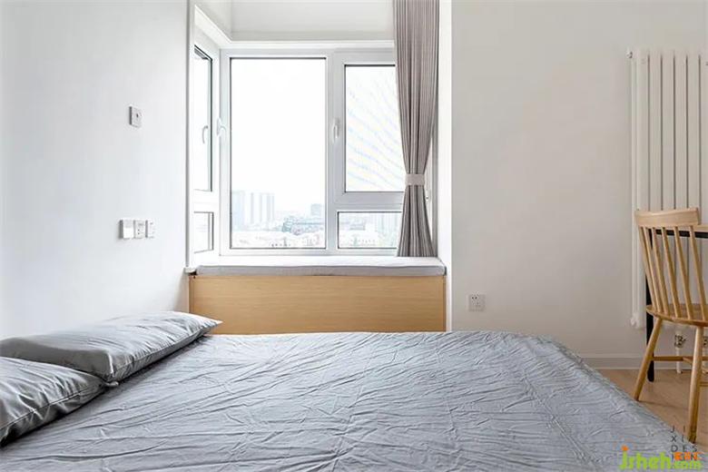 這是次臥的飄窗,和主臥一樣,原來都是很小的陽臺?,F(xiàn)在統(tǒng)一做成了木制飄窗裝修設(shè)計,發(fā)揮它最大的空間價值。