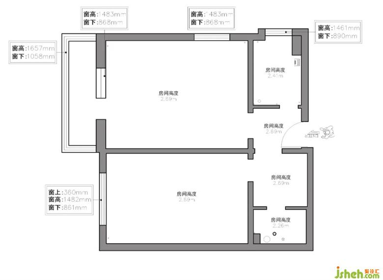 玄關(guān)處由于空間狹小,造成缺乏收納的問題。衛(wèi)生間有比較陳舊的老式下水管,占據(jù)了不少面積,使不大的衛(wèi)生室內(nèi)設(shè)計(jì)師間變得更小了。老房子在建初期,并沒有規(guī)劃出客廳區(qū)域,即便是兩居,也忽略了公共空間。