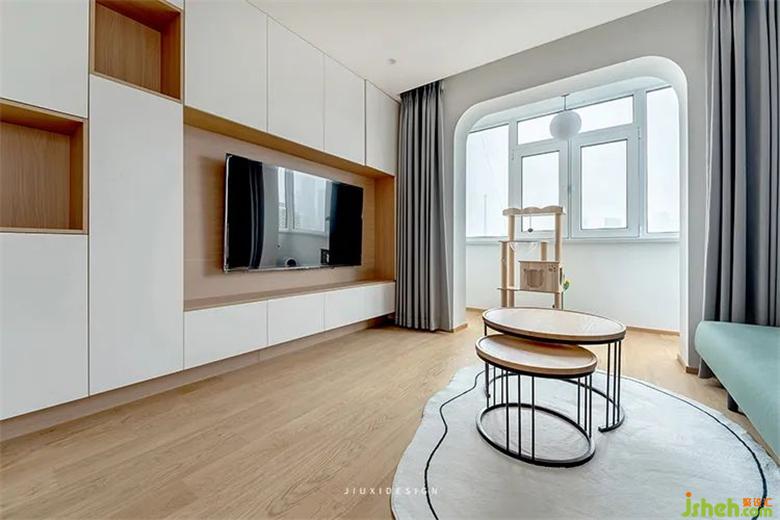陽臺埡口一改原來的直棱直角,用圓弧來弱化棱角感,還原少女心的溫和。半高式的貓爬架,不影響室內(nèi)設(shè)計(jì)師觀景視線。