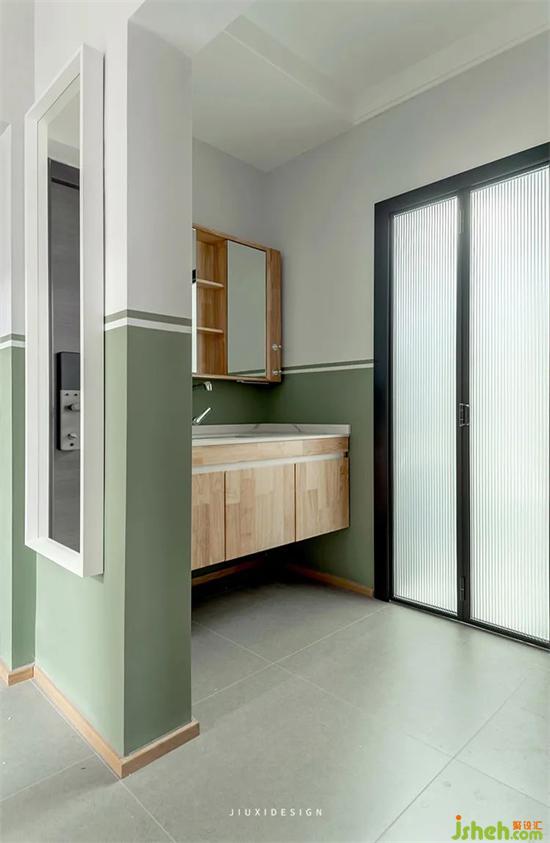 廚房整體以原木和灰色磚為主,干凈整潔。室內(nèi)設(shè)計(jì)師為了達(dá)到整體結(jié)室內(nèi)設(shè)計(jì)師構(gòu)統(tǒng)一,下水也用板式家具包覆隱藏,同時(shí)預(yù)留了可以開啟的檢修口,將細(xì)節(jié)感拉滿。