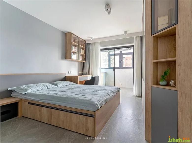 臥室以舒壓和助眠為主,在淺灰色的墻面背景下,用中灰與木色營(yíng)造出空間的調(diào)性,簡(jiǎn)約,清雅。室內(nèi)設(shè)計(jì)不會(huì)有任何的視覺刺激。讓一天的疲憊漸漸舒緩下來。
