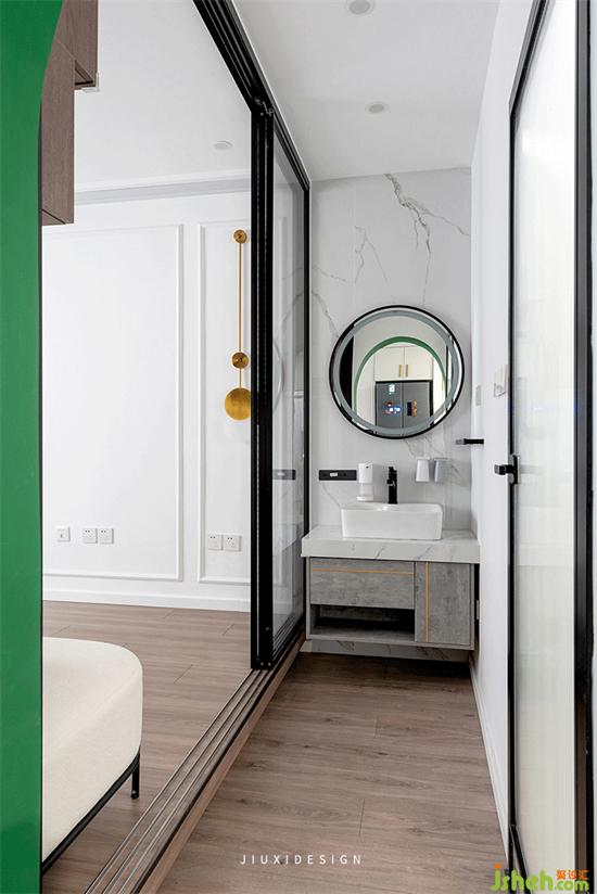 三分離最大的優(yōu)勢,在于家屬成員在如廁和洗漱,再也不會因?yàn)榕抨?duì)發(fā)生沖突,裝修設(shè)計(jì)統(tǒng)一頻段使用不會干擾到彼此。自帶背光燈的圓鏡,簡單還特別有意境,如一汪明月。三聯(lián)動推拉門邊框?qū)挾戎挥?cm,選用超白玻璃,讓室內(nèi)空間更加透亮。