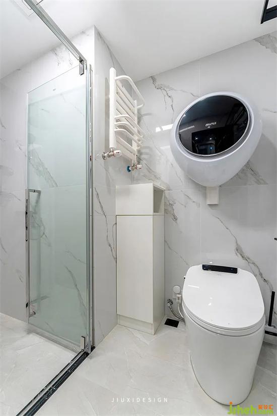衛(wèi)生間空間有限,可以將壁掛洗衣機(jī)安裝到馬桶上方。裝修設(shè)計(jì)前提是必須做好線路布局,避免管線暴露出來亂糟糟。擁有一個完全獨(dú)立的淋浴間,寬敞的3㎡空間滿足各種體型使用。地面做了2cm下沉,省去丑丑的擋水條,簡潔大氣也好清理。