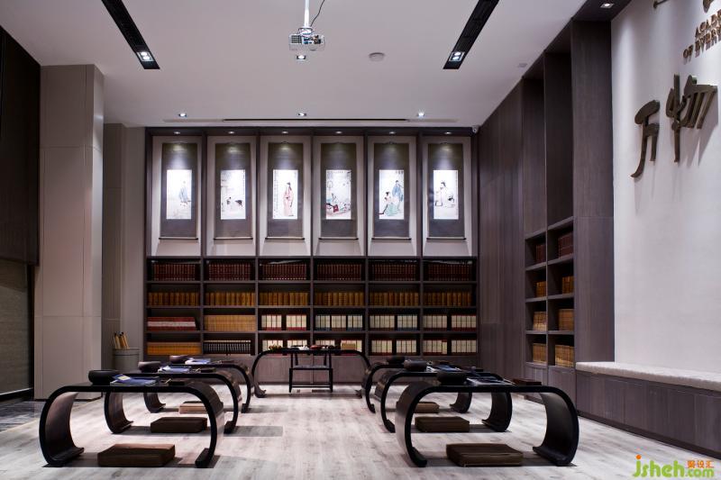 萬物學(xué)堂,以唐朝詩人水墨畫像及書簡(jiǎn)作為空間的主題,書簡(jiǎn)文化有著深厚的文化底蘊(yùn),是民族文化的一個(gè)組成部分,充分營造出濃郁的私塾文化氛圍。