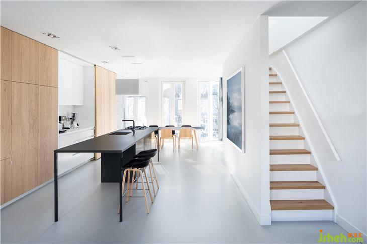 阿姆斯特丹曾經(jīng)是一個(gè)用來出租的房子,現(xiàn)在被改建成一個(gè)寬敞的閣樓。 內(nèi)部采用簡(jiǎn)單的橡木墻板材料,白色抹灰墻,黑色(內(nèi)置)家具和灰色鑄造地板。
