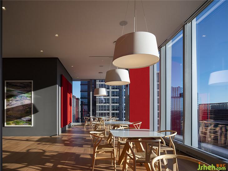 該空間由日本藝術(shù)家上野正雄(Ueno Masao)的竹制懸空雕塑和清水純子(Junko Kirimoto)設(shè)計(jì)的日本漆面桌子組成。這個(gè)空間有一種東方的感覺(jué),巧妙地衡量了比例,符合賦予Kirimoto工作室活力的意大利和日本情感。