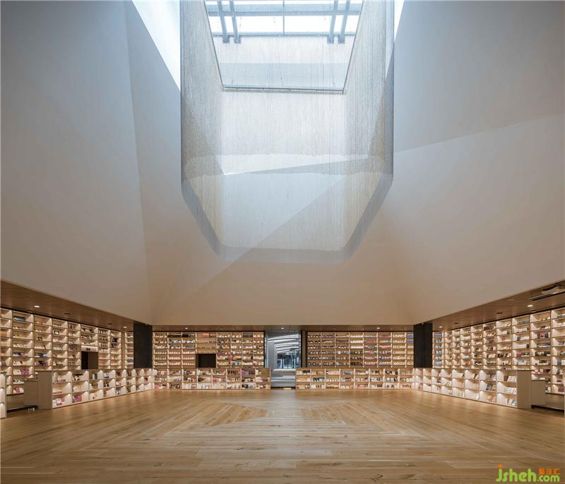 透明天窗是本區(qū)域的設(shè)計(jì)亮點(diǎn),利用自然天光渲染靜謐的環(huán)境色調(diào),將阿房宮賦中的華美殿堂淬煉為當(dāng)代的極簡(jiǎn)線條,勾勒出讀者們沉心讀書(shū)的理想之地。書(shū)城設(shè)計(jì)