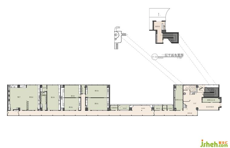 托育中心設計為更好地利用空間,打破常規(guī),設計多功能教室,在功能排布上使空間連貫,又相互獨立。折疊門閉合,形成普通教室和烘焙室。