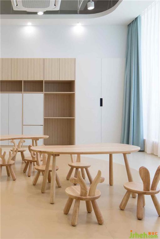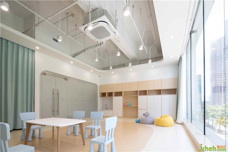 兒童空間設(shè)計教室保留空間原頂,不做吊頂,最大限度保證空間高度,減少成本,也不會產(chǎn)生空間的壓抑感。
