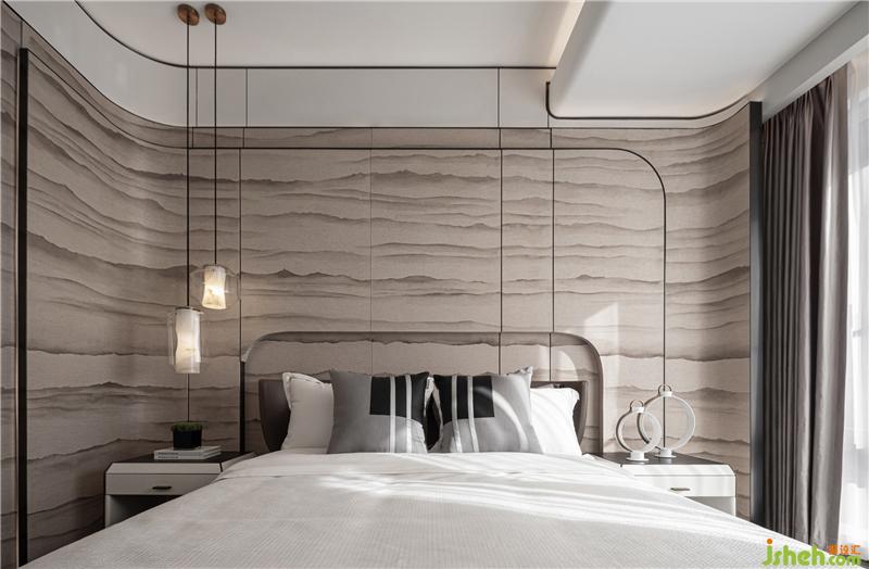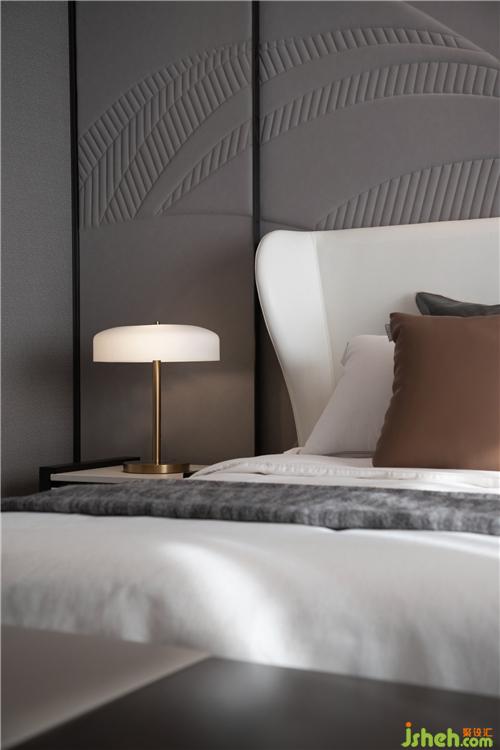 整個(gè)項(xiàng)目除了將山、水元素作為靈感,還將游艇內(nèi)飾的線條注入三間臥房,主臥更是以皮雕工藝將海浪的形態(tài)抽象化展現(xiàn)于背景墻之上,深邃的質(zhì)感與雅致灰色形成極強(qiáng)的張力,青島樣板房設(shè)計(jì)讓居住氛圍充滿低調(diào)奢華的氣質(zhì)。三間臥房中有兩間為套房的形式,將空間利用率發(fā)揮到極致。