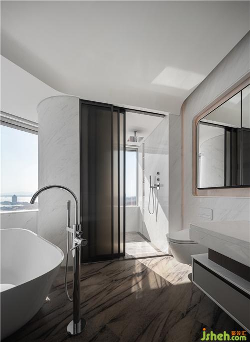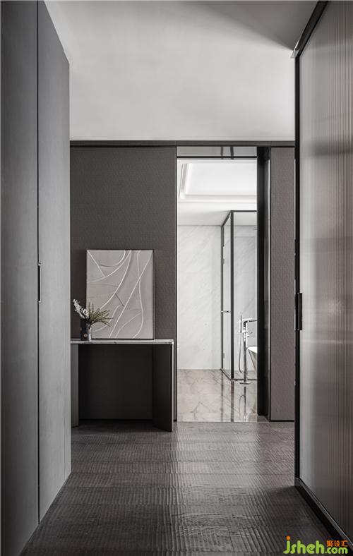 玄關(guān)處設(shè)計(jì)了集浴室與化妝間為一體的空間,面向整個(gè)公共區(qū)開放,為家人與朋友提供便捷。同時(shí)為了兌現(xiàn)精致生活的每處細(xì)節(jié),設(shè)計(jì)中采用了瑞族、勞斯、西曼帝克等家裝品牌,讓空間儼然成為一件經(jīng)得起時(shí)間考驗(yàn)的“可居住藝術(shù)品”,在城市中為居住者的心靈創(chuàng)造一個(gè)休憩之所。