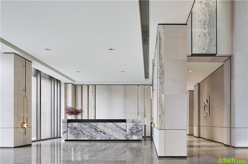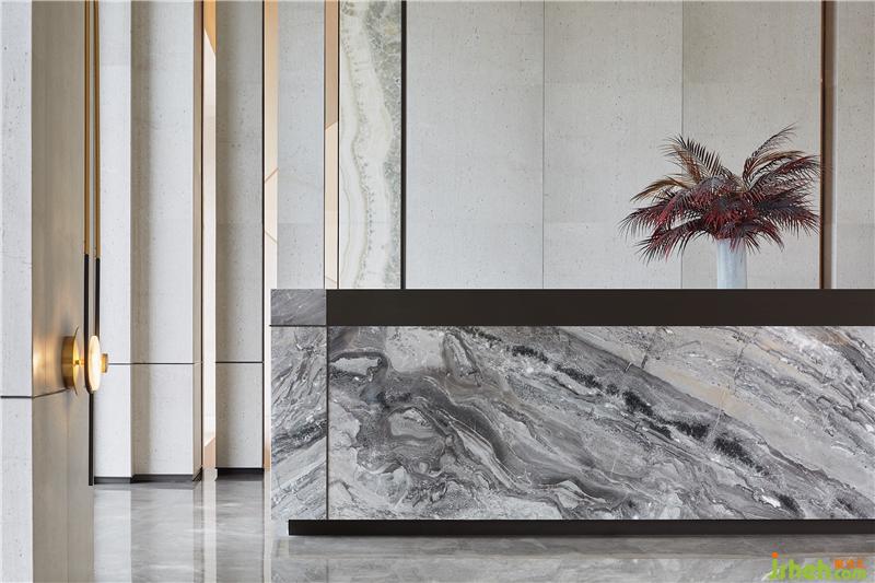 我們以抽縫的方式,將石材做出格柵的感覺,既順應(yīng)中軸線設(shè)計,又形成獨(dú)特的空間矩陣,寧波售樓處設(shè)計形成空間在閱讀視覺上的屏障。人在空間中移動,風(fēng)景在縫隙間躲躲藏藏,如同蘇州園林中的步移景異。