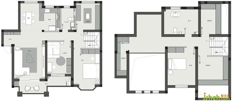 1、一樓需要主臥+兒童房+衣帽間,二樓需要客房